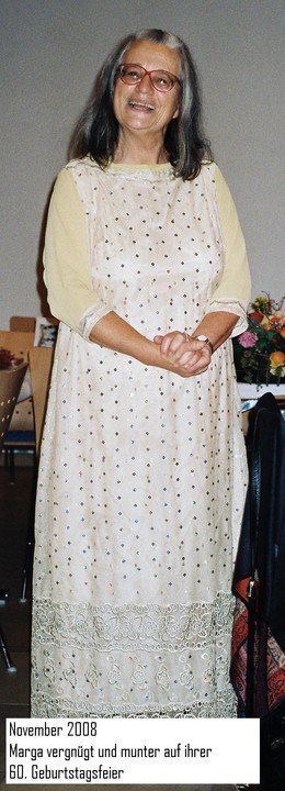 Wir sind dankbar, dass wir Wege gemeinsam mit Marga gehen durften und vermissen schmerzlich ihre Begeisterungsfähigkeit, Lebenslust, ihren Lebensmut, ihre Improvisationskunst, Kreativität und vor allem Margas Freundschaft, deren wir uns gewiss sein konnten. Monika, Ulla und alle weiteren Freundinnen und Freunde